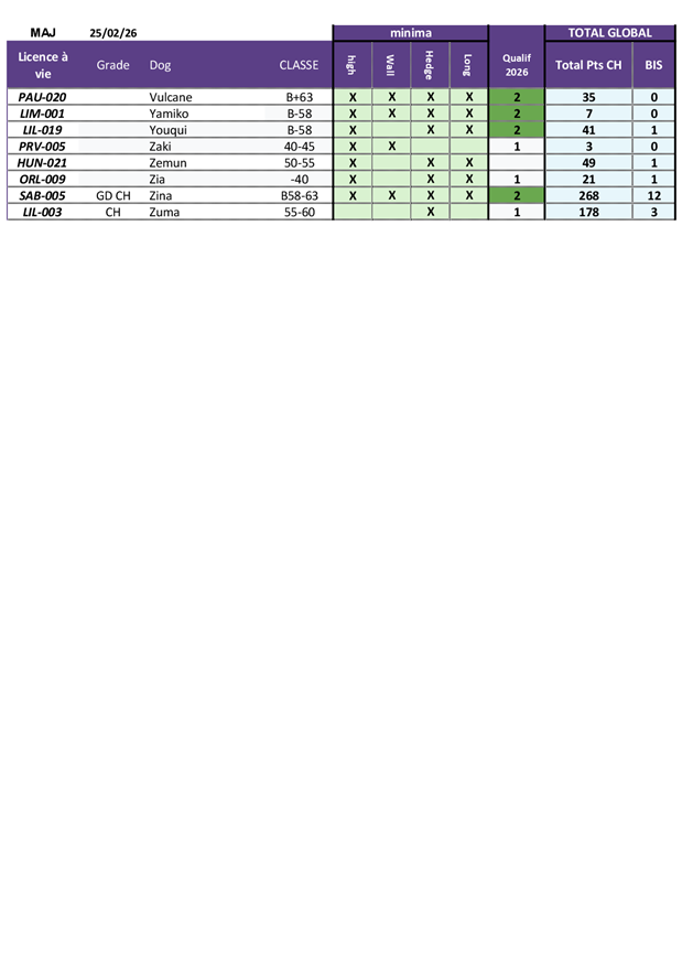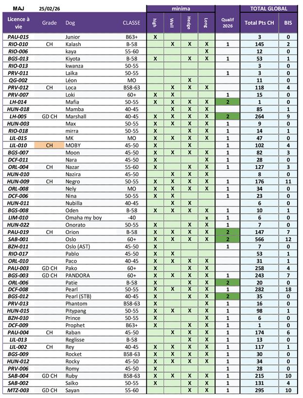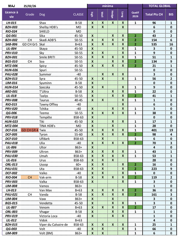 MAJ (25/02/26) des points pour les chiens ayant commencés la saison 2026
