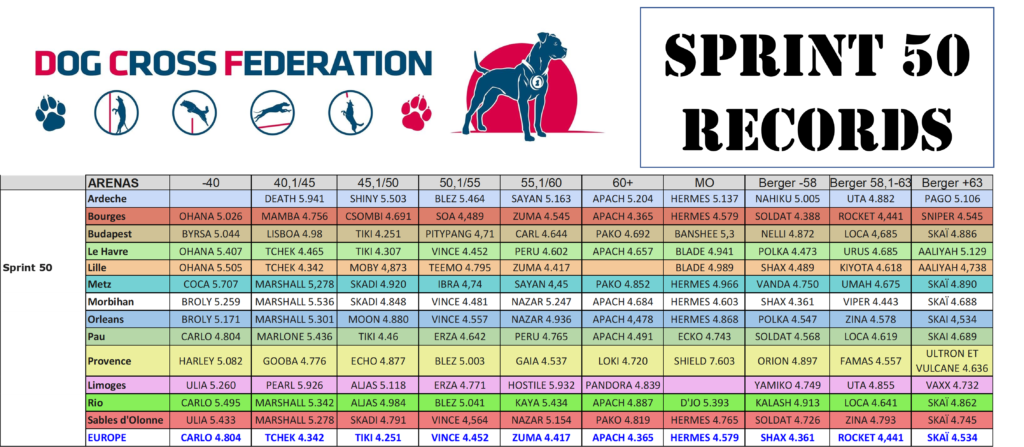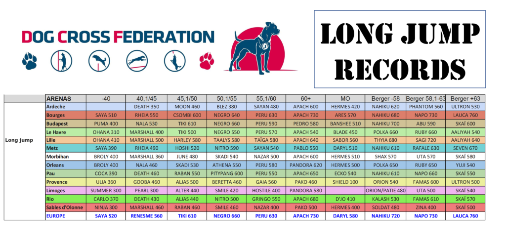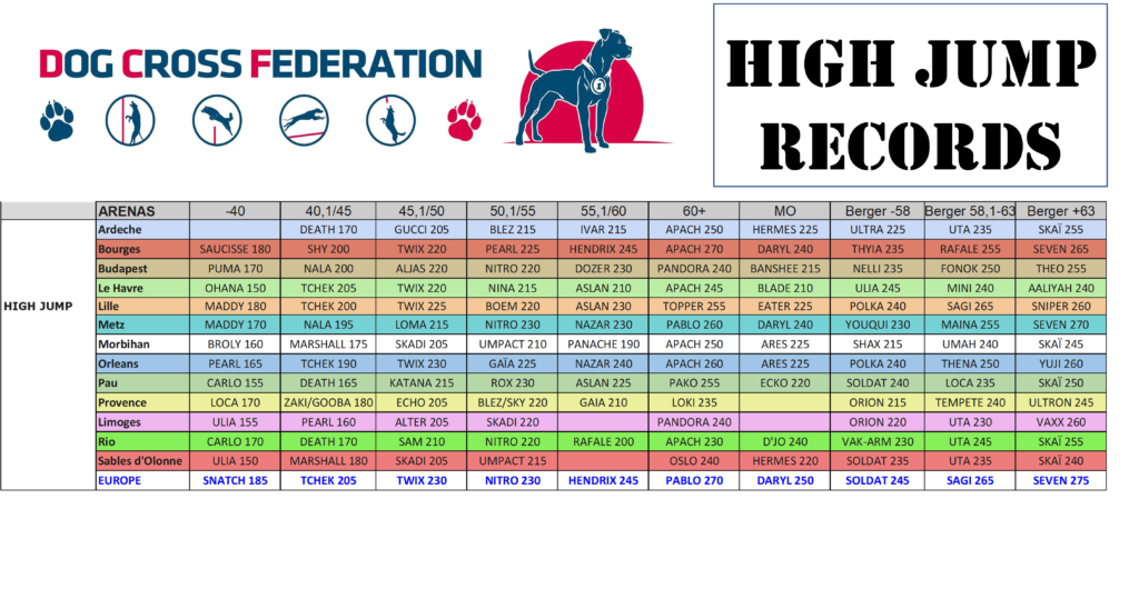 Pour les records nationaux, c’est une comparaison entre toutes les mesures validées sur l’ensemble des Arenas de France lors des DCF CUP ou Finale Nationale, et la meilleure des mesures enregistrée et en rapport avec la date des faits, le premier l’ayant effectué étant le détenteur du record. ( mise à jour 26/02/2026)