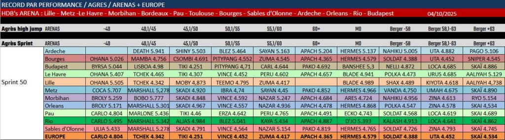 Vous trouverez sur cette page tous les records par Aréna, par classe, et les records nationaux et Europe. Le premier à avoir validé un record sera noté sur ce tableau, et sera remplacé une fois sa mesure dépassée et non égalée même si le poids du chien est plus lourd ou plus haut au garrot. Pour les records nationaux, c’est une comparaison entre toutes les mesures validées sur l’ensemble des Arenas de France lors des DCF CUP ou Finale Nationale, et la meilleure des mesures enregistrée et en rapport avec la date des faits, le premier l’ayant effectué étant le détenteur du record.