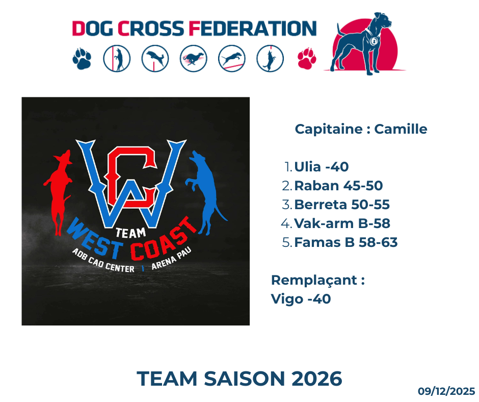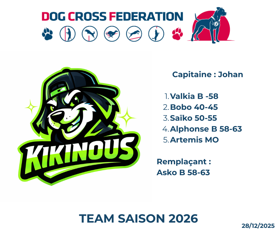 Team 2026 Voici les teams déclarées, c’est le mail qui fait foiPour la déclaration mail a envoyé à secretairedcf@gmail.com avec le logo pour la prise en compte.